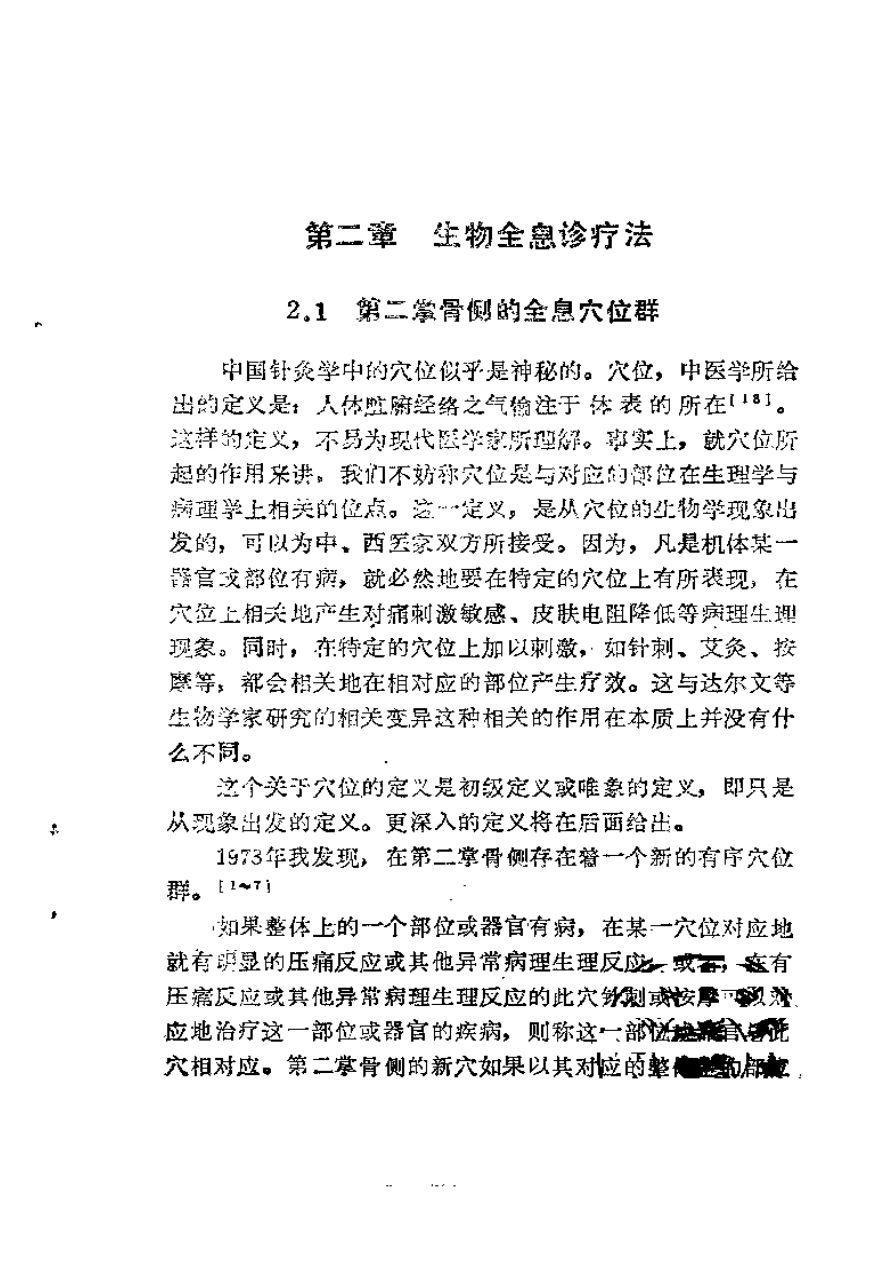 生物全息诊疗法是一种基于“生物全息律”的中西医结合诊疗方法,认为生物体的每一局部(全息元)都包含整体信息,可通过刺激特定区域(如第二掌骨侧)来诊断和治疗全身疾病。